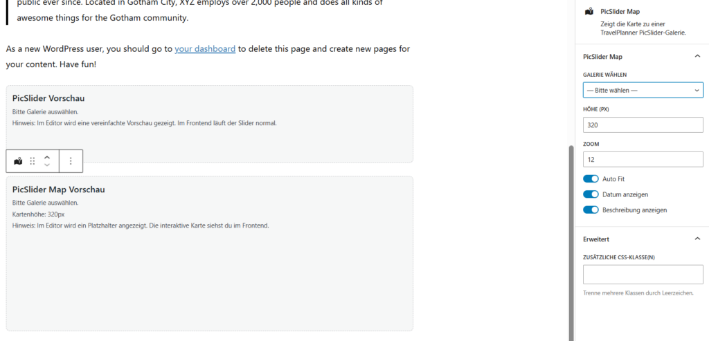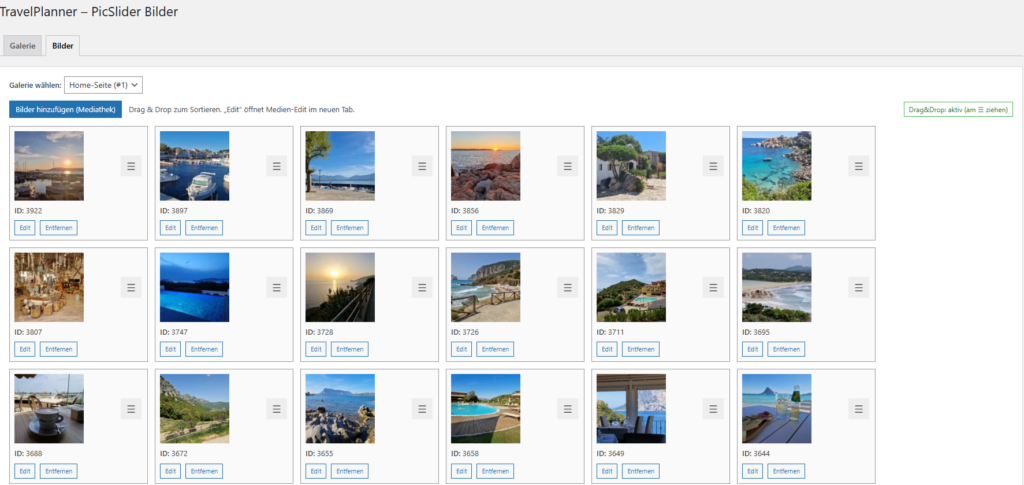 Der TravelPlanner erstellt automatisch ansprechende Bildergalerien im Slider-Format, die Ihre Reisen lebendig präsentieren. Sie entscheiden dabei flexibel: Bilder können zufällig angezeigt oder gezielt in einer definierten Reihenfolge dargestellt werden.